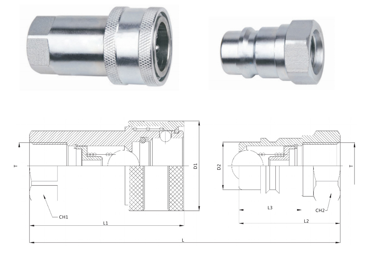 GT-C1 ball valve type hydraulic quick coupling is a type of hydraulic coupling used in fluid power applications to quickly connect and disconnect hydraulic lines. It is a high-performance coupling designed for demanding hydraulic applications that require a reliable and leak-free connection.